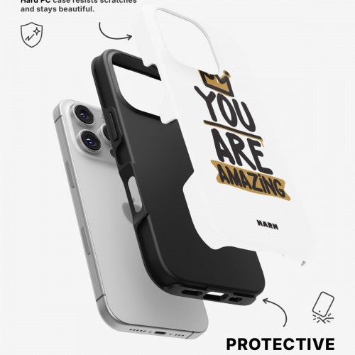 Meet the Tough Case for iPhone 16 Pro Max in the pattern: Amazing. Strong on the outside, soft on the inside. This case is made to protect your phone from daily drops, scratches and surprises while keeping it stylish.