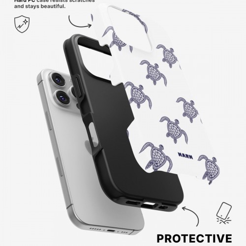 Meet the Tough Case for iPhone 16 Pro Max in the pattern: Blue Turtles. Strong on the outside, soft on the inside. This case is made to protect your phone from daily drops, scratches and surprises while keeping it stylish.