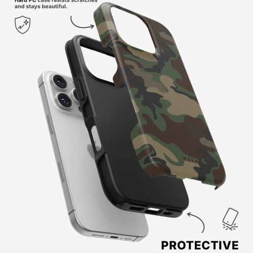 Meet the Tough Case for iPhone 16 Pro Max in the pattern: Camouflage. Strong on the outside, soft on the inside. This case is made to protect your phone from daily drops, scratches and surprises while keeping it stylish.