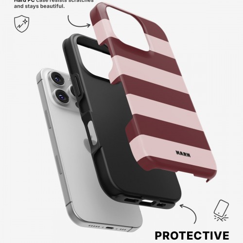 Meet the Tough Case for iPhone 16 Pro Max in the pattern: Cranberry Stripe. Strong on the outside, soft on the inside. This case is made to protect your phone from daily drops, scratches and surprises while keeping it stylish.