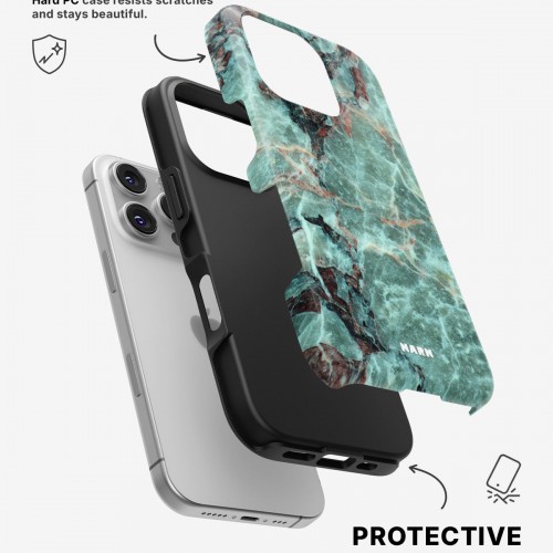 Meet the Tough Case for iPhone 16 Pro Max in the pattern: Green Marble. Strong on the outside, soft on the inside. This case is made to protect your phone from daily drops, scratches and surprises while keeping it stylish.