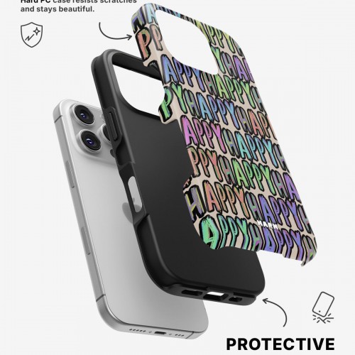 Meet the Tough Case for iPhone 16 Pro Max in the pattern: Happy. Strong on the outside, soft on the inside. This case is made to protect your phone from daily drops, scratches and surprises while keeping it stylish.