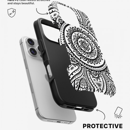 Meet the Tough Case for iPhone 16 Pro Max in the pattern: Henna Mandala. Strong on the outside, soft on the inside. This case is made to protect your phone from daily drops, scratches and surprises while keeping it stylish.