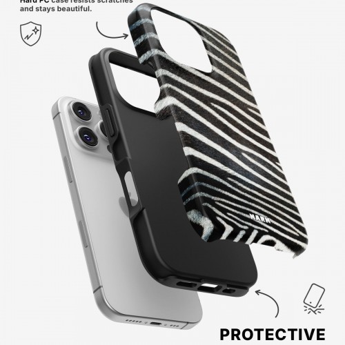 Meet the Tough Case for iPhone 16 Pro Max in the pattern: Zebra Stripe. Strong on the outside, soft on the inside. This case is made to protect your phone from daily drops, scratches and surprises while keeping it stylish.