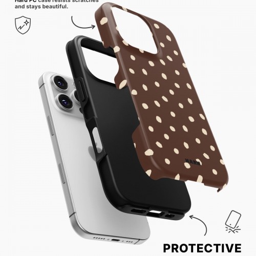 Meet the Tough Case for iPhone 16 Pro in the pattern: Choco Dots. Strong on the outside, soft on the inside. This case is made to protect your phone from daily drops, scratches and surprises while keeping it stylish.