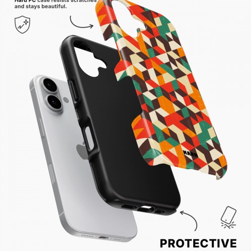 Meet the Tough Case for iPhone 16 in Retro Geometric. Strong on the outside, soft on the inside. This case is made to protect your phone from daily drops, scratches and surprises while keeping it stylish.