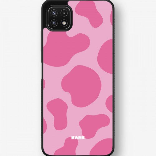 This design features: animal print, bold, cow, pink