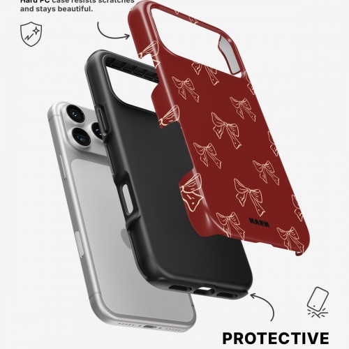 Meet the Tough Case for iPhone 17 Pro Max in the pattern: Cherry Bows. Strong on the outside, soft on the inside. This case is made to protect your phone from daily drops, scratches and surprises while keeping it stylish.