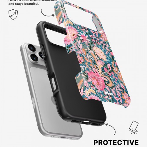 Meet the Tough Case for iPhone 17 Pro Max in Fantasy Flowers. Strong on the outside, soft on the inside. This case is made to protect your phone from daily drops, scratches and surprises while keeping it stylish.