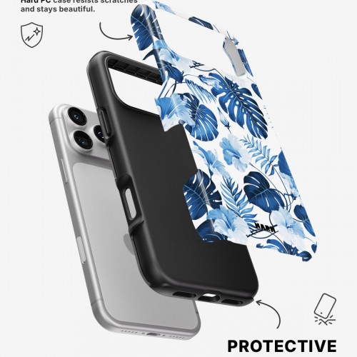 Meet the Tough Case for iPhone 17 Pro in Blue Tropics. Strong on the outside, soft on the inside. This case is made to protect your phone from daily drops, scratches and surprises while keeping it stylish.