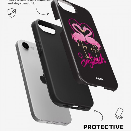 Meet the Tough Case for iPhone 7 / iPhone 8 in the pattern: Beach Flamingo. Strong on the outside, soft on the inside. This case is made to protect your phone from daily drops, scratches and surprises while keeping it stylish.