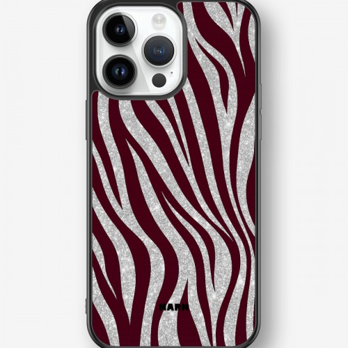 This design features: burgundy, glam, glitter effect, zebra
