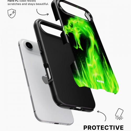 Meet the Tough Case for iPhone Air in Green Flames Dragon. Strong on the outside, soft on the inside. This case is made to protect your phone from daily drops, scratches and surprises while keeping it stylish.