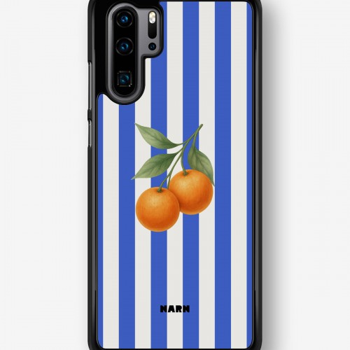 This design features: oranges, blue, citrus, white, stripes