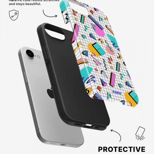 Meet the Tough Case for iPhone SE (2020/2022) in the pattern: 80s Memphis. Strong on the outside, soft on the inside. This case is made to protect your phone from daily drops, scratches and surprises while keeping it stylish.