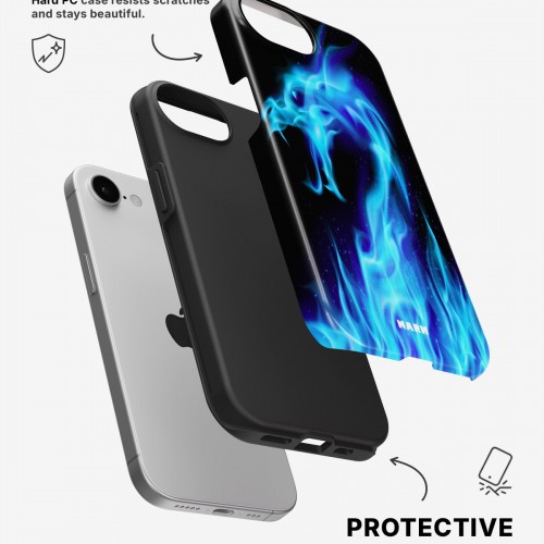 Meet the Tough Case for iPhone SE (2020/2022) in the pattern: Blue Flames Dragon. Strong on the outside, soft on the inside. This case is made to protect your phone from daily drops, scratches and surprises while keeping it stylish.