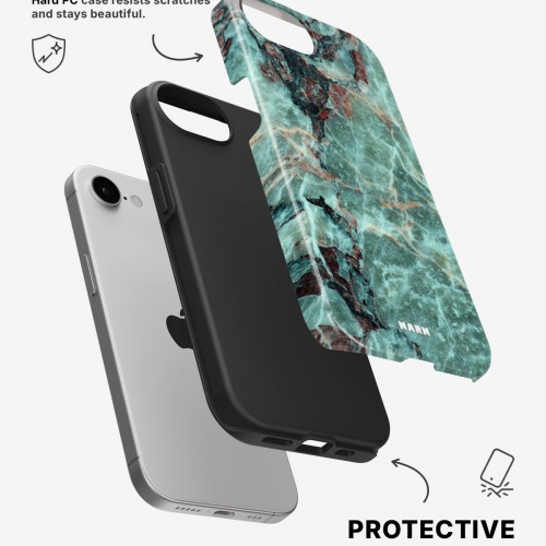 Meet the Tough Case for iPhone SE (2020/2022) in the pattern: Green Marble. Strong on the outside, soft on the inside. This case is made to protect your phone from daily drops, scratches and surprises while keeping it stylish.