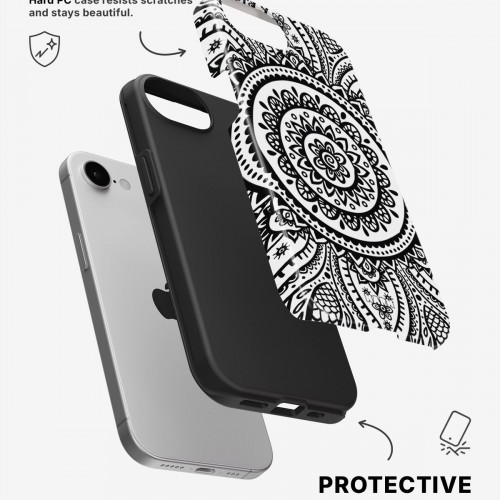 Meet the Tough Case for iPhone SE (2020/2022) in the pattern: Henna Mandala. Strong on the outside, soft on the inside. This case is made to protect your phone from daily drops, scratches and surprises while keeping it stylish.