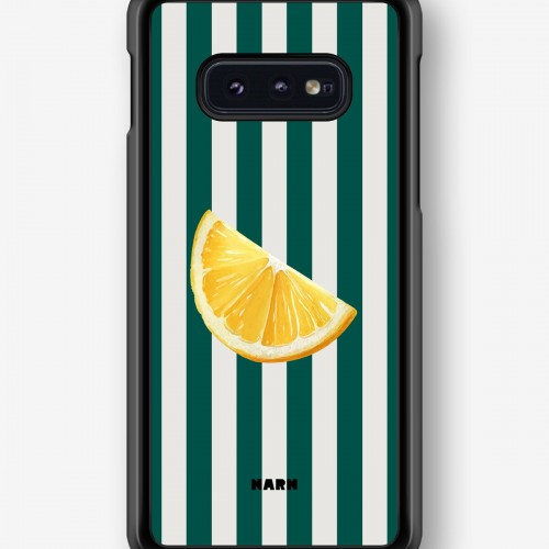 This design features: lemon, fruit, striped, summery