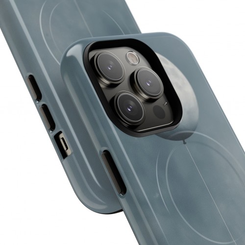 The main feature of this protective phone case is a detailed moon depicted as a smooth, oversized balloon, rendered in a sophisticated blue palette for clarity and focus. Surrounding the central motif, concentric circles and subtle star accents create a balanced flow, contrasting with the moon balloon to enhance visual harmony and structure. Defined by crisp linework and a celestial style, the design highlights geometric precision and the unique circle motif, ensuring the phone case delivers artistic integrity and sharp pattern definition through elevated visual craftsmanship.