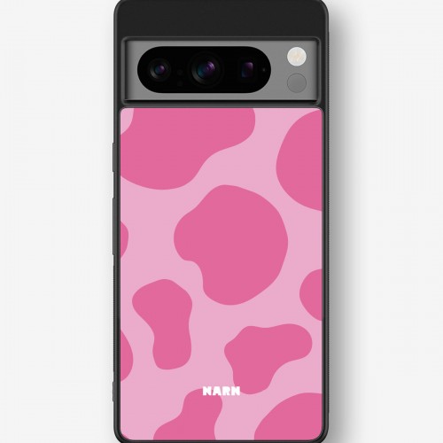 This design features: animal print, bold, cow, pink