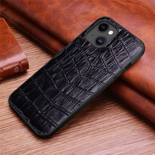 Protective Case for iPhone 14 Plus Rubberized TPU Phone Case Genuine Leather Crocodile Texture Anti-Fall Shockproof Cover – Black
