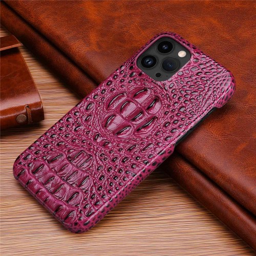 Protective Case for iPhone 14 Pro Hard PC Phone Case Genuine Leather Coated Crocodile Texture Anti-Fall Shockproof Cover – Wine Red