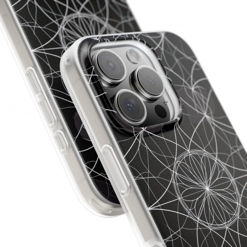 The Radiant Petal Orbit protective phone case features a geometric circle motif, using a crisp white color palette for a bold, graphic pattern. White forms the foundation for layered circles radiating from the center, delivering sharp contrast and visual order. Repeating orbitals and precise spacing in the design create a rhythmic flow, balancing symmetry with dynamic movement for a unified style. Distinctive characteristics include intersecting arcs and uniform petal-like shapes that reinforce clarity and energy, expressing the fusion of visual precision and artistic craftsmanship in this modern pattern.