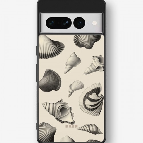 This design features: beach style, ocean theme, monochrome, seashells