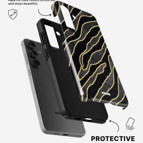 Meet the Tough Case for Samsung Galaxy A36 in the pattern: Golden Zebra. Strong on the outside, soft on the inside. This case is made to protect your phone from daily drops, scratches and surprises while keeping it stylish.