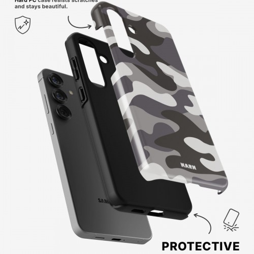 Meet the Tough Case for Samsung Galaxy A36 in the pattern: Grey Camo. Strong on the outside, soft on the inside. This case is made to protect your phone from daily drops, scratches and surprises while keeping it stylish.