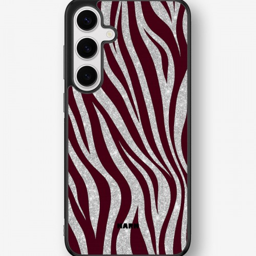 This design features: burgundy, glam, glitter effect, zebra