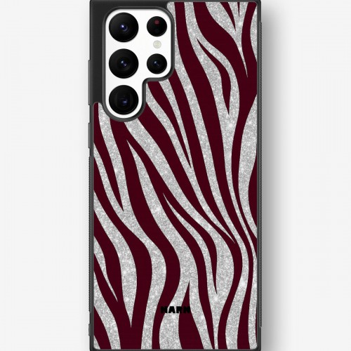 This design features: burgundy, glam, glitter effect, zebra
