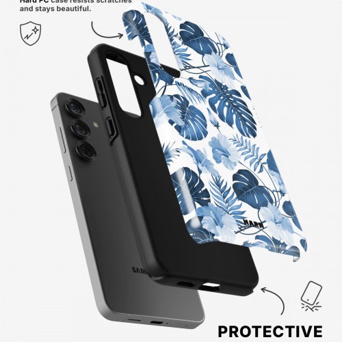 Meet the Tough Case for Samsung Galaxy A54 5G in the pattern: Blue Tropics. Strong on the outside, soft on the inside. This case is made to protect your phone from daily drops, scratches and surprises while keeping it stylish.