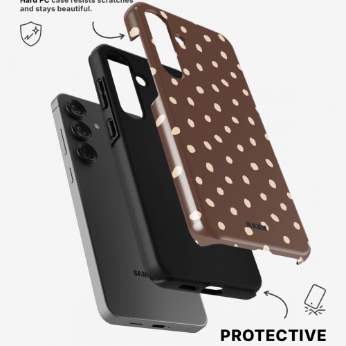Meet the Tough Case for Samsung Galaxy A54 5G in the pattern: Choco Dots. Strong on the outside, soft on the inside. This case is made to protect your phone from daily drops, scratches and surprises while keeping it stylish.
