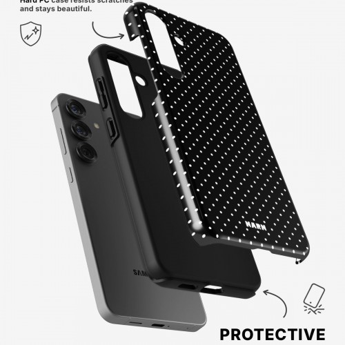 Meet the Tough Case for Samsung Galaxy A54 5G in the pattern: Classic Dots. Strong on the outside, soft on the inside. This case is made to protect your phone from daily drops, scratches and surprises while keeping it stylish.