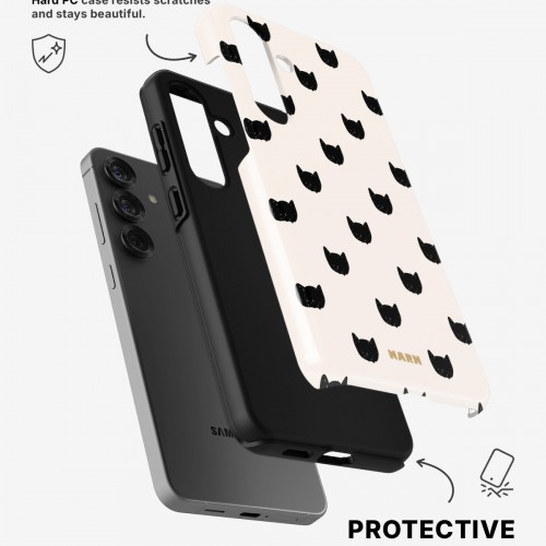 Meet the Tough Case for Samsung Galaxy A55 5G in the pattern: Kitty Dots. Strong on the outside, soft on the inside. This case is made to protect your phone from daily drops, scratches and surprises while keeping it stylish.
