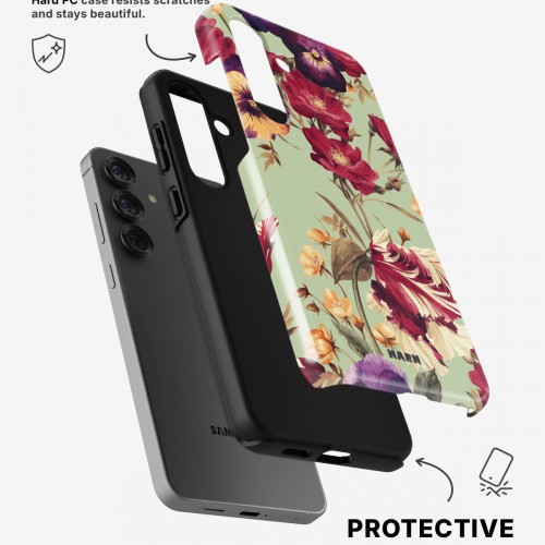 Meet the Tough Case for Samsung Galaxy A55 5G in the pattern: Pansy Pansy. Strong on the outside, soft on the inside. This case is made to protect your phone from daily drops, scratches and surprises while keeping it stylish.
