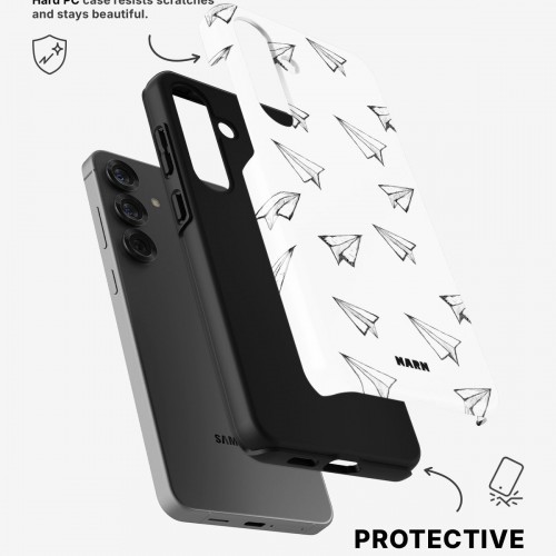 Meet the Tough Case for Samsung Galaxy A55 5G in the pattern: Paper Planes. Strong on the outside, soft on the inside. This case is made to protect your phone from daily drops, scratches and surprises while keeping it stylish.