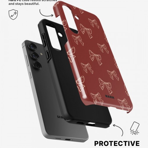 Meet the Tough Case for Samsung Galaxy A56 in the pattern: Cherry Bows. Strong on the outside, soft on the inside. This case is made to protect your phone from daily drops, scratches and surprises while keeping it stylish.