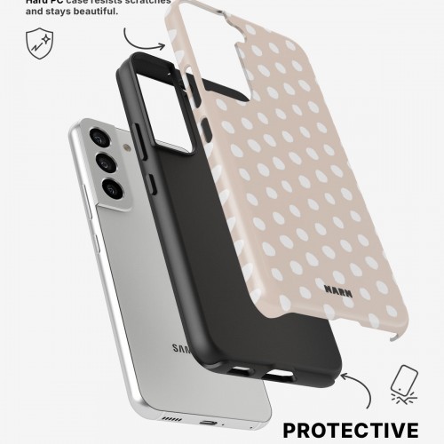 Meet the Tough Case for Samsung Galaxy S21 in the pattern: Almond. Strong on the outside, soft on the inside. This case is made to protect your phone from daily drops, scratches and surprises while keeping it stylish.