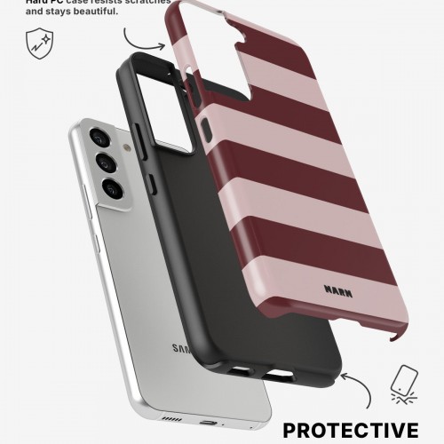 Meet the Tough Case for Samsung Galaxy S21 in the pattern: Cranberry Stripe. Strong on the outside, soft on the inside. This case is made to protect your phone from daily drops, scratches and surprises while keeping it stylish.