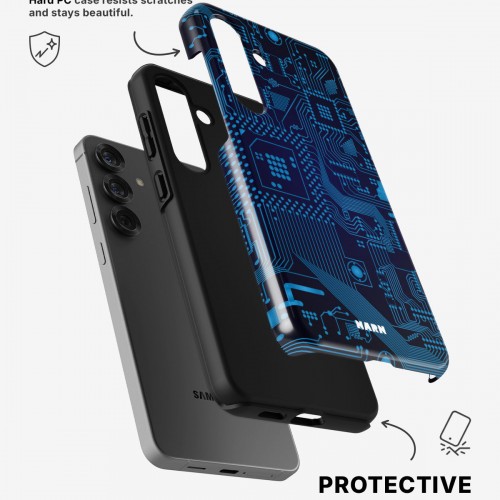Meet the Tough Case for Samsung Galaxy S23 5G in the pattern: Circuit Board. Strong on the outside, soft on the inside. This case is made to protect your phone from daily drops, scratches and surprises while keeping it stylish.