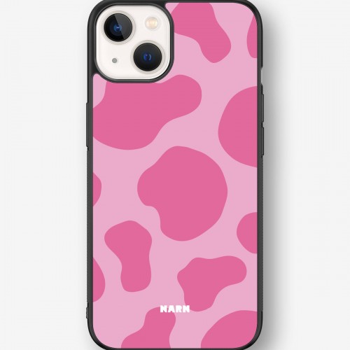This design features: animal print, bold, cow, pink