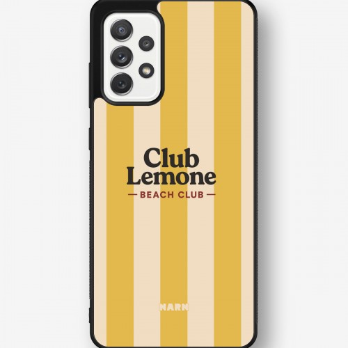This design features: beach club, lemon, striped, summer