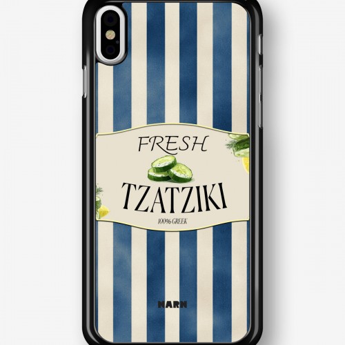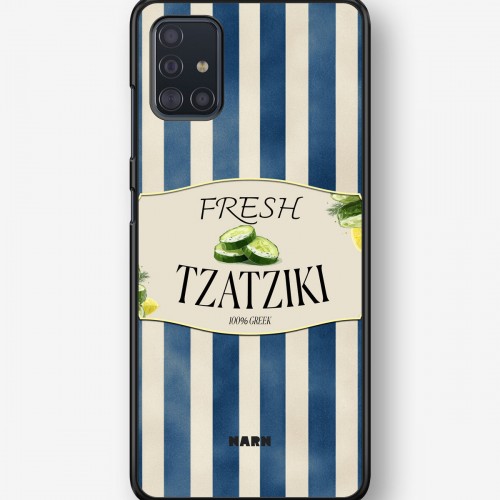 This design features: cucumber, lemon, greek, stripes, tzatziki