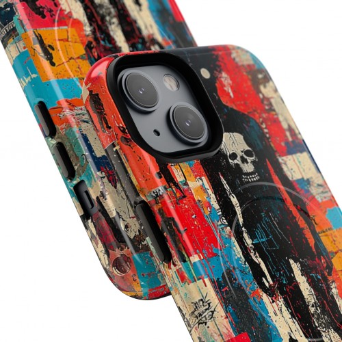 The main feature is a sharp-edged spiky skull silhouette, rendered in a bold black palette that defines the protective phone case’s design with confidence. Surrounding splatter motifs create dynamic movement and visually anchor the skull, bringing contrast and flow that energize the pattern while preserving structural balance. Distinctive jagged spikes, dramatic contours, and a high-impact illustration style amplify the edgy visual motif—showcasing the phone case’s creative craftsmanship and precision within a modern, graphic statement.